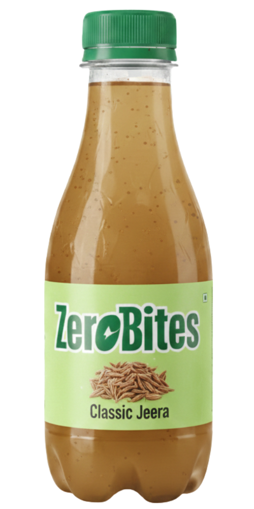 ZeroBites blends tradition with innovation—delivering zero added sugar, zero artificial flavours, zero preservatives, fortified with Vitamin C and rich dietary fibre. A ready‑to‑drink, zero‑calorie beverage that offers sustained energy and delicious taste.